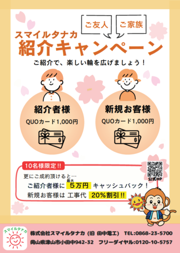 ご紹介頂けると、紹介した方もされた方ももれなくお得な特典がついてきます!
